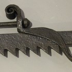 An 18th/19th century wrought iron adjustable pot hook with scrolling terminals.