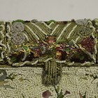 An early 20th century enamelled and beadwork decorated evening bag with chain stitched needlework flowers, width 22cm.