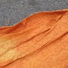 A Chinese coral coloured silk embroidered short jacket, late Qing dynasty, the borders and collar worked in gilt and coloured threads with flowers, foliage and insects, length 71cm (faults).