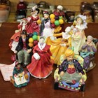 A collection of eleven Royal Doulton figures, comprising 'The Skater', HN3439, 'Biddy Pennyfarthing', HN1843, 'Top O'The Hill', HN1834, 'The Balloon Man', HN1954, 'A Stitch in Time', HN2352, 'Patricia', HN3365, 'Silks & Ribbons', HN4808, 'Abdullah', HN2104, 'Kirsty', HN2381, 'Coralie', HN2307, and 'Katie', HN3360, together with a similar figure of an Eastern gentleman with two vases.