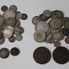 An Elizabeth I sixpence 1574, mint mark Eglantine, a Roman Egyptian bronze coin, a small group of 19th century silver coins and a small collection of pre-1947 coins.