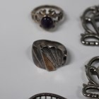 A silver dress Albertine, fitted with a T-bar, tassel and swivel, length 28cm, a silver and cabochon amethyst quartz single stone ring, a silver curblink bracelet with a silver heart shaped padlock clasp, a silver two piece waist belt buckle with scroll decoration, a tennis racket brooch and a ring.