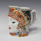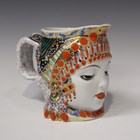A Russian Lomonosov porcelain jug, mid-20th century, designed by Natalie Danko as the head of a girl wearing a polychrome and gilt enriched kokoshnik headdress, indistinct mark to base, height 14cm.