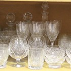 A group of assorted glassware, 20th century, including six tumblers by Webb Corbett, six other sundae bowls, ten wines and a decanter and stopper with silver 'Sherry' decanter label, Birmingham 1986 by S.J. Rose & Son.