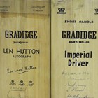 A Gradidge 'Imperial Driver' cricket bat, bearing the signatures of the 1961 Australia and England squads, the reverse with additional Yorkshire, Lancashire, Nottinghamshire and Hampshire teams, together with another similar period bat, bearing the signatures of the England and India squads.