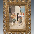 An early 20th century Italian pietre dure rectangular panel, inlaid in various hardstone specimens with a dancing man and woman in Tyrolean style costume, 26.5cm x 18cm, held within a gilt gesso frame.
