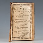 OCCULT. - Hermes TRISMEGITUS. The Divine Pymander… in XVII Books, translated formerly out of the Arabick into Greek, and thence into Latine, and Dutch, and now out of the Original into English by that Learned Divine, Doctor Everard. London: by Robert White, for The Brewster, and Greg. Moule, 1650. First English edition, 8vo (138 x 84mm.) Title with decorative woodcut borders, engraved initials, head and tailpieces. (Small corner loss to initial blank, lacking errata leaf, browning to rear blanks.) Contemporary calf, blind-tooled borders, later black morocco lettering piece to spine (some loss to leather at top of spine, surface wear, two worm holes to lower cover). Note: one of the great esoteric works. This English translation by Everard came from the Latin translation by Ficino and is the first rendering into English of part of the Corpus Hermeticum. Though the original dating is uncertain, the hermetic texts formed the basis of the Renaissance interest in alchemy, astrology and magic.