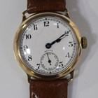 A Zenith 9ct gold circular cased three-quarter size wristwatch, the gilt jewelled movement detailed 'Zenith 3382359 Swiss Made', the signed enamelled dial with black Arabic numerals and subsidiary seconds, London 1942, case diameter 2.8cm, on a brown leather strap.