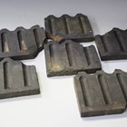 A set of approximately eighty late Victorian salt glazed stoneware garden edging tiles of arched and fluted form, 17cm x 18cm, together with approximately eight other damaged examples.
