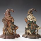 Two late Victorian cast iron doorstops in the form of Punch and his dog Toby, both with original painted finish, height 31cm.