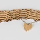 A gold gatelink bracelet on a 9ct gold heart shaped padlock clasp, together with four 9ct gold rings in a variety of designs and another ring.