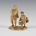 A Japanese ivory okimono figure group, Meiji period, modelled as a father and son feeding two birds, incised signature to base, height 12.5cm.