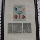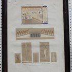 A series of six 19th century French hand-coloured engravings by Leroy, after Legentil, all depicting Egyptian decoration, objects and items from Thebes, l, 51cm x 69cm, all mounted within stained wooden frames.