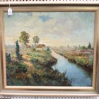 Wilhelm E. Friedrich - River Landscape with Cottage, 20th century oil on canvas, signed, 59cm x 68cm, within a painted and silvered frame.