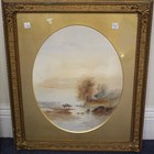 E.M. Earp - 'Loch Awe', 19th century watercolour, signed, 44.5cm x 19.5cm, within a titled mount and gilt composition frame, together with eight further watercolours, including examples by William Henry Earp, Edwin Earp and Inson Earp.