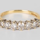 An 18ct gold and diamond seven stone ring, claw set with a row of circular cut diamonds graduating to the centre, ring size approx Q, with a case.