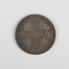 A Queen Anne Second Bust shilling 1703, detailed 'Vigo', with old ink-written collector's ticket.