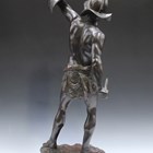 Georges Omerth? - an early 20th century brown patinated cast bronze figure of a Roman gladiator, the naturalistic base bearing indistinct signature 'G. Omer.', height 72cm.