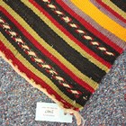 A Turkish kelhim rug, late 20th century, the polychrome banded field with strips of stylized leafy vines, 184cm x 150cm.