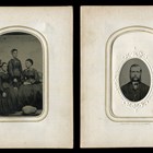 PHOTOGRAPHS. A collection of photographs, the majority portraits, including an ambrotype of three men in an interior, within a leather case (defective), a tin-type of three young women in a studio, other ambrotypes and tin-types, 30 cartes-de-visites and 13 cabinet-size photographs, together with a group of 19 glass negatives of animals and other subjects.
