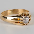 An 18ct gold and diamond single stone ring, claw set with a circular cut diamond, ring size approx P1/2, diamond weight approx 0.60ct, with a case.