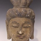 A Chinese Ming style carved and painted wood Guanyin head, height 39cm.