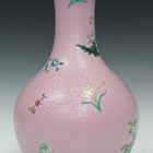 A Chinese famille rose enamelled pink ground porcelain vase, mark of Qianlong but possibly Republic period, the globular body and flared neck enamelled with scattered single flowers, including chrysanthemum, peony and prunus, on an incised whorl pink ground, iron red pseudo seal mark to base, height 31.8cm.