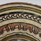 A Nishapur pottery bowl, possibly 11th century, the centre painted in dark brown with a panel of script within orange, ochre and dark brown borders, height 6.6cm, diameter 23.5cm (repaired).
