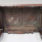A Chinese hardwood occasional table, late 19th century, the rectangular panelled top above a carved apron and scroll shouldered legs, length 55.5cm, height 27.5cm.