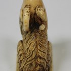 A Japanese carved ivory figural seal, Meiji period, modelled in the form of a seated goat with head raised, on a rectangular base, the underside carved in low relief with two red stained seals, height 7.2cm (one horn damaged).