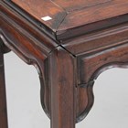 A Chinese hardwood centre table, late 19th century, the rectangular panelled top above a shaped apron, on block legs, length 93cm, depth 46cm, height 86cm.