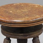 A late 19th century American walnut revolving piano stool, the ring turned legs terminating in cast iron eagle claws clutching glass balls, height 46cm, width 36cm, depth 36cm.