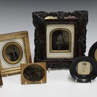 A group of four Victorian ambrotypes, a miniature watercolour of a boy and a framed photograph.