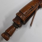A 17th century carved treen combination pipe tamper snuff box, modelled in the form of a gentleman wearing a wig, length 10.2cm.
