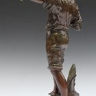 Charles Anfrie - a late 19th century French brown patinated cast bronze patinated cast bronze figure of a boy fishing, holding a fish and rod, the naturalistic base bearing cast signature and titled plaque, height 51cm.
