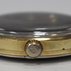 An Omega Automatic gilt metal fronted and steel backed gentleman's wristwatch, circa 1969, the signed and jewelled movement numbered '29858410', the signed champagne coloured dial with gilt baton hour markers and date aperture, the case back interior numbered '166.070', the case back with engraved presentation inscription, case diameter 3.4cm, with brown leather strap.