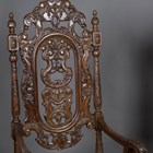 A pair of late 19th/early 20th century French carved walnut throne chairs, profusely carved with leaf scrolls, the overstuffed seats raised on turned and block legs united by stretchers, height 155cm, width 71cm, depth 62cm.