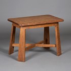 An Edwardian Arts and Crafts oak occasional table, probably Glasgow School, the rectangular top above flared supports united by an 'X' stretcher, height 45.5cm, width 60cm, depth 38cm.