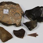 An Egyptian Stone Age bladed tool, detailed 'Egypt 15 Miles. S. of Thebes W. side of Nile', length 11cm, together with a small group of Egyptian flints, mostly detailed.