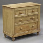 A Victorian stripped pine chest of two short and two graduated long drawers, on bun feet, height 81cm, width 88cm, depth 45cm.