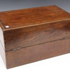 A large early 20th century oak writing box, the hinged lid enclosing a fitted interior, width 51cm.