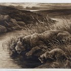 Herbert Dicksee - Peace (Lions on a Riverbank), etching on vellum, signed in pencil, published by Frost & Reed circa 1906, 35cm x 57cm, within a gilt composition frame.