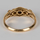A gold and diamond five stone ring, collet set with a row of circular cut diamonds graduating in size to the centre stone, detailed '18ct', ring size approx N.