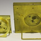 A 20th century gilt metal cased strut timepiece, the square dial with silvered chapter ring, height 11cm, together with a smaller similar strut timepiece, height 6.7cm.