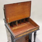 A Victorian amboyna and ebonized Davenport, the back fitted with two doors above a sloping surface, the side fitted with four drawers, height 105cm, width 55cm, depth 57cm.
