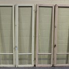 Two early 20th century matching pairs of white painted French doors, each pair with a locking handle and inset with glass, 193cm x 104cm.
