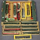 A collection of Fleischmann gauge HO railway items, including a No. 1339 electric locomotive, finished in brown livery, within a window box, seven other locomotives, coaches and goods rolling stock (some faults and parts missing).