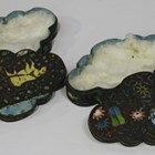 A pair of Chinese polychrome enamelled copper boxes and covers, 20th century, of lobed outline, one decorated with precious objects and Buddhistic emblems, the other with a scene of a farmer ploughing a field, length 11.6cm.
