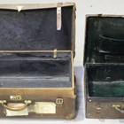 An early 20th century crocodile skin suitcase, width 55cm, together with a larger brown leather travelling case, width 78cm.