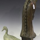 A carved and stained pine model of a horse's head, probably intended to be for a carousel, height 49cm, together with a carved and painted wooden decoy duck, length 32cm.